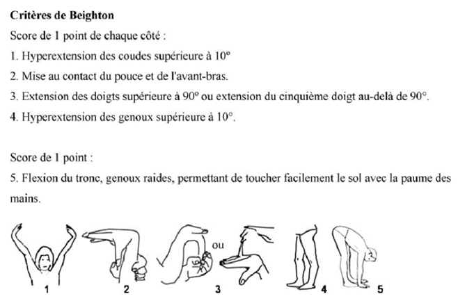 Pour votre information : Les critères d’hyperlaxité de Beighton.