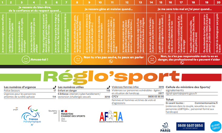 Plusieurs outils sont également disponibles sur le site ministériel https://www.sports.gouv.fr/boite-outils-proteger-les-pratiquants-55,comme la « Réglo’sport » qui permet au mineur d’évaluer leur bien-être dans leur club/association.